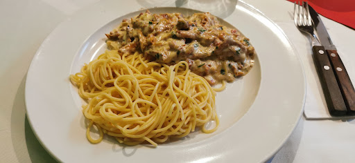 Wir haben zu neunt kurzfristig angerufen und noch einen freien Tisch zu Abend bekommen, worüber wir uns sehr gefreut haben. Nach der Bestellung vergingen ca. 60 Minuten und alle Tische um uns herum hatten ihre Speisen schon erhalten. Auf Nachfrage bei der Kellnerin wollte sie nachschauen. Nach weiteren 15 Minuten ohne Infos fragten wir bei einer anderen Kellnerin nach, die dann sagte, dass wir doch bitte nur sie fragen sollten, ihre Kollegin sei noch Azubi. Sie kam dann wieder an den Tisch und erklärte, dass das Internet unsere Bestellung nicht in die Küche übertragen hätte. Der Chef kenne das Problem, hieran lässt sich aber nichts ändern. Es würde jetzt aber sofort unser Essen zubereitet werden, es sollte bald da sein. Wir saßen mittlerweile anderthalb Stunden im Restaurant und haben nicht mal einen Salat erhalten. Auf Nachfrage wurde welcher mit einem Joghurtdressing gebracht. Für unsere laktoseintolerante Freundin, die das bereits bei der Bestellung eindeutig kommuniziert hatte, wurde der Salat wieder mitgenommen und kein neuer gebracht. Somit konnte sie uns anderen beim essen zuschauen. Weitere 15 Minuten später kam die Kellnerin nochmal an den Tisch und sagte, dass die Bandnudeln aus seien, ob ich Penne oder Spaghetti haben möchte. Nach zwei Stunden haben wir endlich unser Essen erhalten. Die Kroketten auf einem Teller waren noch gefroren und meine Pfifferlinge mit Rahmsoße lagen auf einer Hälfte des Teller, die Spaghetti auf der anderen. Einen Löffel zu bringen, damit ich beides vermengen kann, musste ich erfragen. Nachdem ich dann merkte, dass "wahlweise mit Rahmsoße oder Natur mit Zwiebeln und Speck" bedeutet, dass Rahmsoße, Zwiebeln und Speck drin sind, habe ich den Teller zurück gehen lassen, worauf mit einem genervten Stöhnen reagiert wurde. In meinen Augen hatte ich das einzig vegetarische Gericht bestellt, die Kellnerin sagte wieder nur, dass darüber schon einige gestolpert seien, der Chef an der Formulierung auf der Karte aber nichts ändern wolle. Auf der Rechnung stand das Essen dann noch drauf, erst auf Rückfrage wurde es runter genommen.