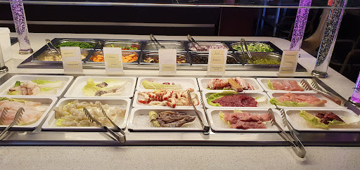 Beim Buffet stehen Teller bereit, leider waren viele Teller am Rand abgeplatzt. Die Gläser hatten teilweise Kalkflecken und Besteck war nur am Buffet, aber das ist okay. Die Essensauswahl war auch okay und entspricht in etwa dem Standard in München, teilweise aber auch spezielle Gerichte. Am mongolischen Grill steht auch eine große an rohen Speisen zur Auswahl. Leider dauerte die Zubereitung ziemlich lange und bei mir wurde auch etwas durcheinander gebracht. So bekam ich erst einen völlig falschen Teller und dann einen Teller, der erstmal korrekt aussah, aber das Fleisch war falsch. Die Wartezeit und so kann mit dem Ansturm erklärt werden. Es hat alles nicht extrem gut geschmeckt, aber es war essbar. Leider war aber um 20:30 Uhr und damit 1,5 Stunden vor dem Ende das Buffet schon abgegrast. Viele Gerichte waren in sehr kleiner Menge da, es sah so aus, als müsste man sich mit den letzen Resten abgeben. Das war leider bei den Nachspeisen nicht besser, der Schokobrunnen war aus. Ich finde es komisch, dass schon 1,5 Stunden vor dem Buffetende und 2,5 Stunden vor Restaurantschließung das Buffet so geleert aussieht. Aber immerhin, scheinbar darf man beim Buffet so lange essen, wie man mag, es gibt keine Zeitbegrenzung.