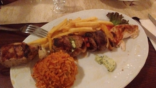 Read moreSomebody needs to visit Greece. The gyros comes by default with a trapezoidal pyramid of rice mixed with what is describable as homemade ketchup as well as peas. Having had multiple vacations in Greece, not one tavern ever offered gyros with rice or had it covered in a large stack of red onions. The meat itself was quite alright, so was the tzatziki, however positioning it onto a leaf of salad is a very peculiar decision. The appetizers came with no spreads or butter, an another normal custom in Greek taverns. What's even more peculiar is that the more authentic variation is listed as a jids' menu item. On the other hand, the styling of the restaurant is quite nice, it is clean and the...