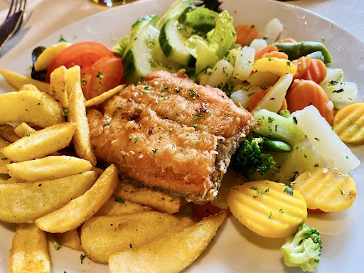 Read moreBeautiful food, architecture and surroundings This was our second visit and it was even better than the first as the beautiful summer evening meant being able to eat outside and fully appreciate the beautiful surroundings as well as the excellent food. We ordered the fish platter for two which came beautifully presented on a large serving plate with various types of fish fillets (all bone free) and generous sides of mixed vegetables, salad and any choice of potatoes. An excellent choice and great...