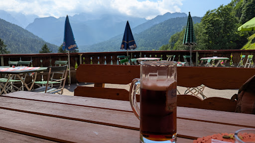Read moreZwei Sterne gibt es für die Aussicht und das gute alkohofreie Bier. Wir hatten nach einer Aufladung für unsere E-Bikeakkus gefragt, (für die wir natürlich auch bezahlt hätten) und wurden harsch angefahren, dann hätte sie bald gar keine Steckdose mehr frei. Da die Tische draußen schon lange kein Lappen mehr gesehen haben, haben wir nur ein Bier getrunken und sind weiter zum Ferchensee-Gasthaus gefahren, wo Aufladung kein Problem war. (s. meine andere Bewertung). Einfach mit der Zeit gehen, dem E-Bike wird die...