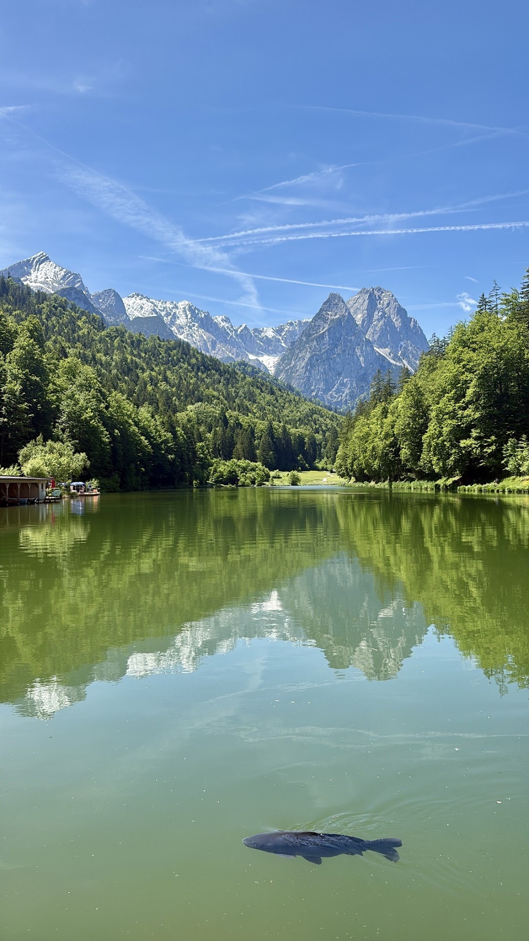 It's a very nice Bavarian restaurant with a great setting beside a small swimming lake and great view of mountains in a distance. As far as the settings, it cannot get any better than this. On a good weather day, get a table besides the lake, watch large carps swim by with fins out of the water, ducks keep themselves busy...just enjoy your time slips by...