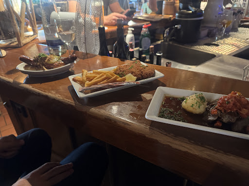 We soon discovered why : in March 2023 the menu is very poor - Bavarian steak was not even on the menu ! Portions were reasonable, but mayonaise in plastic Sachets ? Not what one expects from a good restaurant. I wasn't even offered any or ketchup with my Pork Schnitzel. The male waiter appeared devoid of personality - not his fault, he had clearly received little training in hospitality.