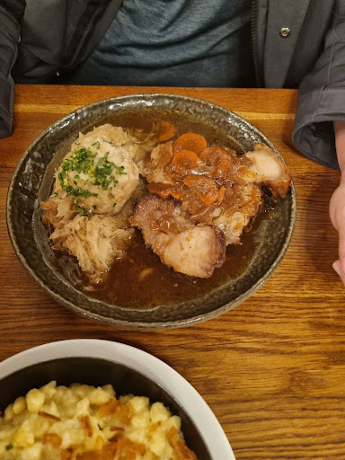 We soon discovered why : in March 2023 the menu is very poor - Bavarian steak was not even on the menu ! Portions were reasonable, but mayonaise in plastic Sachets ? Not what one expects from a good restaurant. I wasn't even offered any or ketchup with my Pork Schnitzel. The male waiter appeared devoid of personality - not his fault, he had clearly received little training in hospitality.