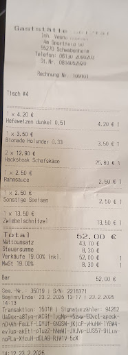 Read moreEin Stern noch zuviel! Kann die vielen topp-Bewertungen hier null nachvollziehen. Die Bedienung war vom ersten Kontakt an unfreundlich und schnippich, da ich die Frechheit besaß und (aus gesundheitlichen Gründen) nichts für mich zum trinken bestellte. Wir (3 Pers.) warteten von Betreten des "Restaurants" bis zum servieren des "Essens" knapp eine Stunde und das, bei gerade mal 6 besetzten Tischen mit zusammen 16 Leuten, von denen die Hälfte schon zu essen hatte. Nachdem wir nach 50 Minuten mal nachfragten, wo das "Essen" bliebe wurde uns unfreundlich entgegnet, es wäre ja hier alles voll und das Essen würde ja schließlich "frisch" zubereitet. Wir waren ganz kurz davor, aufzustehen und zu gehen, als das "Essen" dann nach knapp einer Stunde doch noch kam. Das "frisch" zubereitete "Essen" (2x Hacksteak Schafskäse, 1x Zwiebelschnitzel)) entpuppte sich dann als eine schlecht durchgebratene (wahrsch. TK) Frikadelle. Das Hacksteak von mir und meinem Sohn glich sich zu 100%, selbst die Bratmuster der Pfanne auf diesem waren zu 100% gleich, rechtwinklig und wirkten wie mit dem Lineal gezogen. Der Schafskäse innen noch komplett lau und wahrscheinlich maschinell eingepflanzt. Das Fleisch hatte eine eklig- feste Konsistenz, wie man sie von solchen TK-Produkten her kennt (siehe Foto). Als ich das später monierte, flippte die Bedienung förmlich aus und regte sich extremst auf, was mir einfallen würde, so etwas zu behaupten. Mein Sohn wollte zu seinem Hacksteak Spätzle mit Rahmsauce statt Pommes. Für dieses "Feature" berechnete man uns dann stattliche 5 € (2x 2,50€!!!) zusätzlich. Eine unfassbare Unverschämtheit! Das Schnitzel meiner Frau schmeckte auch null und auch hier lag die Vermutung nahe , das es sich um billige Convenience-Qualität handelte. Lediglich die Bratkartoffeln schmeckten meiner Frau. Schade, für das schöne Geld und die verschwendete Zeit, die wir in dieser Lokalität...