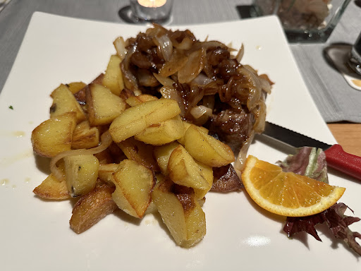 Eines der besten und "ehrlichsten" Restaurants in der Nähe! Hier bekommt man zu den bayerischen Wochen die beste Haxe weit und breit. Unfassbar frisch, saftig, tolle und sehr leckere Kruste mit wirklich guten und wunderbar schlonzigen Klößen, so muss das sein. Auch das Rumpsteak begeistert mich jedes mal aufs Neue. Hier bekommt man ein anständiges Stück zartes Fleisch, nach Ansage gegart mit frisch in der Pfanne glasig gebratenen Zwiebeln, sehr leckeren Bratkartoffeln und dazu ein feiner Vorspeisensalat mit einem sehr leckeren hausgemachten Dressing. Saisonal gibt es natürlich auch Gau-Algesheimer Spargel mit neuen Kartoffeln, Schnitzel oder anderen Beilagen und Sauce Hollandaise. Doch egal was man von der Karte bestellt, es schmeckt und passt und man merkt und schmeckt die Leidenschaft der Küche! Ich denke, die Bilder sprechen für sich. Die gute Qualität spiegelt sich auch bei der Reservierung wider: Ohne mehrtägige Vorausreservierung bekommt man kaum einen freien Tisch. Die Spargelzeit hat begonnen! Da gibt es für mich nur eine Adresse: Ab ins Schloss Ardeck. Gau-Algesheimer Spargel mit neuen Kartoffeln, die in Butter geschwenkt und perfekt gegart mit einer feinen, buttrigen Sauce Hollandaise und einem knusprigen Schnitzel Wiener Art angerichtet werden, ein Genuss. Ich hatte mir anstatt ein Schnitzel ein Cordon bleu dazu gegönnt, war mega lecker und ich war pappensatt. Ich denke die Bilder sprechen für sich. Ein sehr feiner Abend, muss unbedingt...