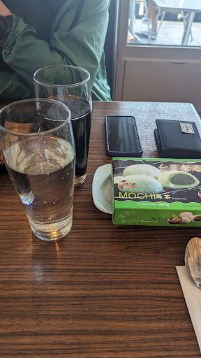 Aber von vorn: Die Getränke kamen nach der Bestellung zügig an. Diese waren leider nicht gekühlt (Softdrinks), was aber selbstverständlich zu verkraften war. Als nächstes kamen 2 Vorspeisen und ein Dessert(???) gleichzeitig. Hier das Highlight des Abends. Das Dessert (Mochi) wurde in der originalen Verpackung wie handelsüblich im Kühlregal einfach auf den Tisch gestellt, mit dem Hinweis wie man die Schachtel aufmacht. Nach dem Auspacken hatte man dann also die Pappschachtel, die Plastiktüte und den restlichen Verpackungsmüll auf dem Tisch liegen. Es gab auch keinen extra Teller oder so auf dem man die Mochi platzieren konnte, diese durften direkt aus der Verpackung genossen werden. Nach dem Dessert wurde dann nun das Hauptgericht serviert, dies entsprach geschmacklich dem üblichen Imbiss-Standard, war daher etwas auf der teuren Seite, was aber Aufgrund der Lage des Etablissements zu verstehen war.
