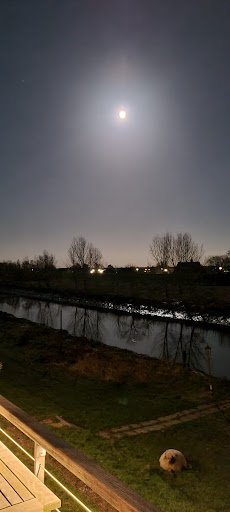 Lage: top! Es fängt mit einer Einfahrt durch einen Torbogen auf einen großzügigen, hübsch angelegten Parkplatz an. Danach schreitet man die Treppen hoch auf den Deich und gelangt zu der Dachterrasse der Aal-Kate. Von hier aus konnten wir auf Stühlen oder Strandkörben über die Felder und auf die Pinnau schauen, die gemächlich in die Elbe fließt.