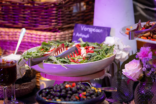Nicht nur die vorherige Organisation auch der Service war wirklich toll. Alle Gäste wurden stets bedient, während des Essens wurde noch zusätzlich Wein an den Tischen serviert und die Wasserkaraffen auf den Tischen, liebevoll mit Zitrone oder Minze zugesetzt, wurden nie leer. Die Theke war nicht nur aufgrund der hochwertigen Getränke, sondern auch aufgrund der netten Barkeeper und dem schnellen Service bis mitten in die Nacht stets gut besucht. Vor, während und auch nach der Hochzeit waren alle Mitarbeitenden freundlich, hilfsbereit und super sympathisch.