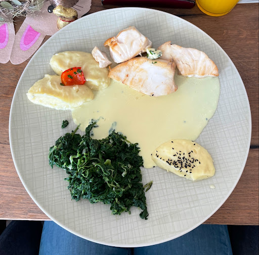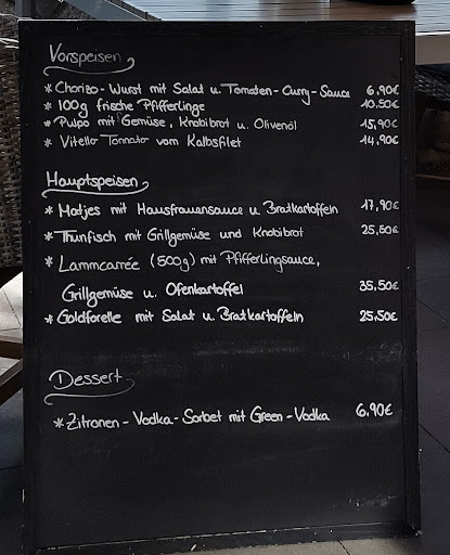 Lovely place at the foot of the now retired power station of Krümmel. You can sit out on the terrace with a lovely view of the river Elbe. The menu features around 5-6 starters and mains each plus a good number of different steaks even including dry aged. This is enhanced be a blackboard menu with specials which offered a very nice extra selection of interesting choices . Nothing was immediately vegetarian friendly though which I rate one star less. They do mention that you can request meals to be adapted to vegetarian or gluten free cooking, but I have to say none struck me as being easily done so. l might be lacking imagination. But I think a vegetarian option should be offered straight off the bat though rather than make you feel bothersome by having to go through extra requests. Service was friendly and our meals tasty. They have special events on some weekends like a BBQ night even with live music (dependent on weather, as Corvid time). I would advise making a reservation even on normal days as the number of seats isn't huge and they were fully booked this Saturday evening without any events going on. Definitely a great little spot on a...