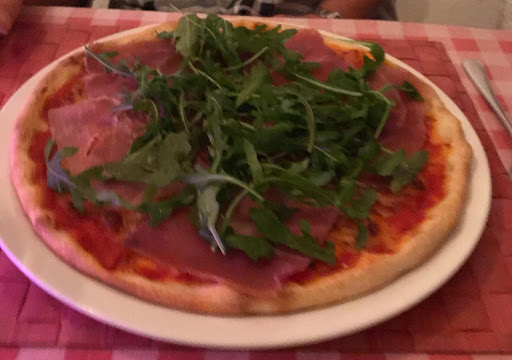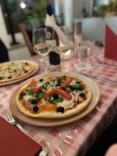 Schon beim Betreten der Räumlichkeiten stach uns der scharfe Geruch von WC-Stein in die Nase, da sich die Toiletten im Eingangsbereich befinden. Da kann einem schon gleich der Appetit vergehen. Die Enttäuschung setzte sich beim Betreten des Hauptraumes fort: sehr primitiv, absolut geschmacklose Plastiktischdecken auf den Tischen (liest man leider auch oft in anderen Rezensionen als Kritikpunkt…) und einfachste Stühle. Dass man das nicht ändert? Wäre doch ein Leichtes! Nun gut, wenn das Essen stimmt…. - dachte ich. Ich bestellte eine Zwiebelsuppe zur Vorspeise, die ich so gerne esse. Als die Suppe kam, dachte ich zuerst: wo ist die versteckte Kamera!? So eine Zwiebelsuppe habe ich noch nie erhalten! Die sogenannte Suppe war komplett durchsichtig, es war klares Wasser, ungewürzt, mit ein paar glasigen Zwiebeln darin. Ohne jeglichen Geschmack! Ich ließ sie zurückgehen. Mein Erstaunen war groß, als die Bedienung am Schluss unseres Besuchs zugab, die Suppe probiert zu haben und mir beipflichtete, dass sie nicht geschmeckt habe. Mutig! Das restliche Essen war ok, aber nicht gut; ich habe bereut keine Pizza genommen zu haben. Wir wollten schick essen gehen - dafür ist das...
