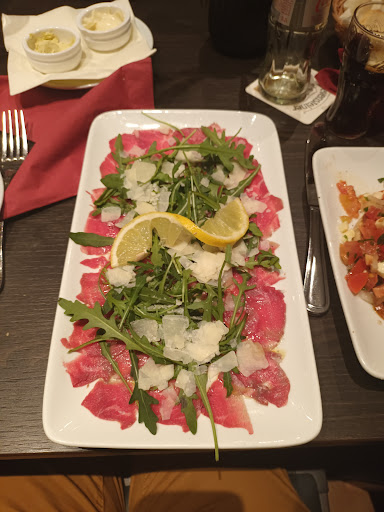 Very nice surprise this restaurant. We (4 ) ordered different menu's ( wine, beer, starters, pizzas, pastas, desserts) and we all shared the same opinion: very good food. Staff was very polite. We were guided to a table in a separate area at the back. A bit of a cold athmosphere overthere because only one other table was used. Most important however is the people that you share...