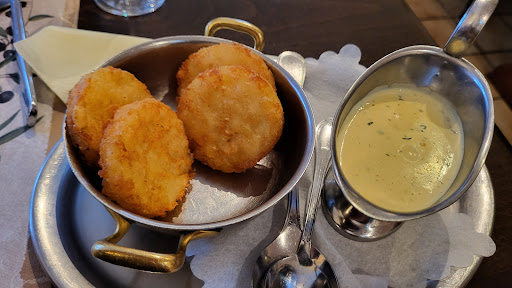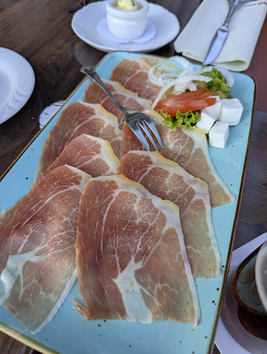 28-4-2025 hier gegeten aspergetijd, ober roemde de super kwaliteit asperges van Wallbeck ( niet ver van hier) en we werden niet teleurgesteld 5 hele grote en licht zoete asperges echt heel lekker. Vis erbij was niet zo bijzonder zalm was op en seelachs (koolvis) was op verzoek van Ruth flink doorbakken maar daardoor taai en met doordringende vislucht. Bijlagen boter gekookte aardappelen en sauce Hollandaise weer heel goed en ruime portie. (€29,50) Mijn gril schotel met verschillende soorten vlees en cevepcic en plakje spek was met kruidig rood paprika/ tomaten sausje was en patat met tzatziki was zoals verwacht lekker en ruim voldoende (€19,50). Heel goede prijs kwaliteit verhouding. Jammer dat palatchinka niet geserveerd werd (wel op kaart voor raam, maar niet op menukaart die we kregen, vanwege omslachtige bereiding ook op aanvraag alleen op drukke dagen in het weekend) Al met al heel goede prijs kwaliteit verhouding zeker aanleiding om hier weer te eten als we in de buurt va Arcen, of...