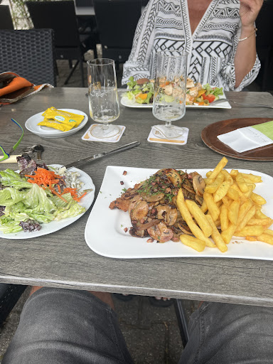 Gestartet wurde draußen, bei traumhaftem Wetter mit flotten 2 Bierchen (Pils/ lecker Bitburger) und dabei die Karte durchgestöbert. Auf dem Bild sieht gleich meine Favoritenseite 😊. Die restliche Karte kann sich natürlich auch sehen lassen. Die Wahl fiel auf dem Hausgemachten Eyckmann Teller. Dieser besteht aus einem Schweineschnitzel – Hähnchen und einem Rumsteaks. Als Beilage wählte ich Kroketten dazu. (normal auch einen gemischten Salat, aber diesen hatte ich abbestellt) Fanden wir mit meinem einzigen Kritikpunkt an, das Schweineschnitzel. Ich muss dazu sagen, dass ich allgemein große Probleme mit sehr fettigen Dingen zum Essen habe. Das Schnitzel glänzte schon beim Servieren der Teller. Zweiter Kritikpunk, leider schmecke es auch so, komplett mit fett durchzogen. Von der Konsistenz war es zart und lief sich super schneiden. Aber Geschmacklich war es einfach nicht meins… das Hähnchen sowie auch das Steak waren Top. Das Steak medium wie auch bestellt, komplett on Point! Ich gehe davon das die Schnitzel vorgebraten und dann entweder in der Pfanne mit Fett Schwimmen oder frittiert werden. Es muss ja in der Regel auch flott gehen, wenn man dazu mit ca. 10 Personen am Tisch, lässt es sich nachvollziehen. Die Portion war wirklich gut und mehr als ausreichend befüllt. Man wird problemlos satt 😊 Der Services, ist flott, aber auch leider etwas unkoordiniert, soll heißen, dass die Mädels und Jungs zick - zack laufen, anstatt sich die Tische einzuteilen. Hat den Vorteil das du oft gefragt wirst ob alles gut ist, oder man noch etwas trinken möchte. In zweiter Ansicht etwas planlos chaotisch - lach.