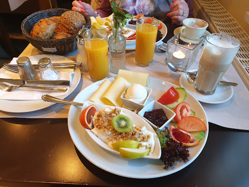 Wir waren heute mit 8 Leuten zum Frühstück dort, ich hatte meinen Hund dabei und wir saßen auf der Terrasse. Da sehr viele Wespen kamen als es ans Essen ging bot man uns an drinnen zu essen,man würde uns ein paar Tische zusammenstellen. Wir gingen also rein, logischerweise mit Hund, als die Kellnerin an den Tisch kam und sah das ich den Hund mitgenommen habe sagte sie der Hund dürfte nicht mit ins Lokal. Ich war etwas irritiert und sagte sie selbst hat uns doch angeboten drin zu essen. Sie sagte das galt nur für uns nicht für den Hund als hätte das jeder normale Mensch so verstanden! Ich sagte sie können doch nicht ernsthaft glauben das ich den Hund draußen anbinde während wir drinnen essen. Der Chef kam dann und meinte Hunde sein im Lokal verboten und dies würde auch an der Tür stehen. Ich habe dann nach diesem Schild gesucht es war tatsächlich an der Tür... ABER... Die Tür war mit einem Keil geöffnet und an die Hauswand grenzend also konnte man die Rückseite der Tür nicht sehen und das Schild somit auch nicht! Keinerlei Einsicht dieses Herren! Für mich und meine Begleitung keine Option mehr bei soviel Dummheit! Für die Kellnerin einige verschenkte EUR...