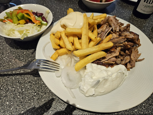 Read moreÜbrig gebliebene Pommes werden neuerdings noch mal frittiert, was zu steinharten Kartoffelstäbchen führt an denen man sich die Zähne ausbeißt. Der Grillteller ist insgesamt kleiner geworden und besteht nun aus etwas Gyros, einem kleinen Schweineschnitzelchen und drei fast schwarz gegrillten Cevapcici - der sonst übliche Fleischspieß fehlt. Salat dazu geschmacklos, Salz und Pfeffer sind Fehlanzeige.