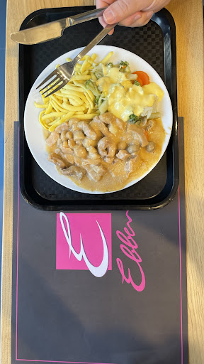 Es freute mich, dass am Freitag Fisch angeboten wurde, aber ich hätte damit rechnen können, dass in einer Fleischerei bei den Bratkartoffeln doch Speck drin ist. In dem Schnellimbiss ist eine schöne Dekoration mit Bären. Sehr praktisch ist, dass an den Tischen Steckdosen sind, die man nutzen kann, und es lagen Zeitschriften aus zum Lesen, u. a. auch Ernährungstipps. Sehr schade, dass man mir keine meiner Getränkewünsche erfüllen konnte. Es gab kein stilles Wasser und keinen Kaffee. Kaffee wird dort überhaupt nicht angeboten. Wäre gut, wenn Sie wenigstens so lösliches Kaffeepulver da hätten. Es wurde gut und schnell bedient. Die Eingangstür ist eine schwere Glastür. Ich weiß nicht, ob diese einen bestimmten Zweck hat. Vielleicht mehr Ruhe von der vielbefahrenden Straße direkt...