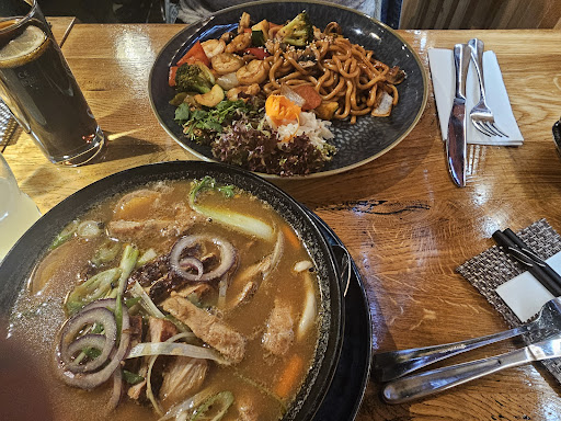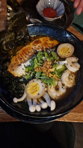 Das Restaurant ist sehr schön gestaltet. Die Bedingungen sind sehr freundlich. Mein Mann und ich haben am Eröffnungstag vor Ort gegessen. Das Essen war optisch sehr schön hergerichtet. Optik ist natürlich nicht alles. Das Essen war hervorragend! Gegessen wurde von uns Suppe, Salat, Ramen, Nudeln mit Huhn und Sushi. Die Thai Suppe ist wirklich lecker, die Zutaten entfalten genau dann ihren Geschmack wenn es sein soll, sehr gut abgestimmt. Der Salat war der Hammer. Bei dem Sesam Dressing war ich erst nicht sicher, jedoch könnte ich mich reinlegen. Die Udon waren für den Geschmack meines Mannes Nichts was jedoch daran liegt das er in der Regel bei diesen Gerichten immer Spagetti serviert bekommt und japanische Nudeln nicht kannte. Ich fand sein Hauptgang sehr lecker und die Udon waren so wie es sein sollte. Die Ramen waren ebenfalls ein Traum. In beiden Gerichten waren Pilze -ich weiß leider nicht wie diese heißen- die auch sehr gut passten. Da wir jedoch absolut keine Pilzesser sind werden wir diese künftig aus der Bestellung rausnehmen lassen. Dennoch probiert diese, vielleicht sagen sie euch zu. Sushi war schön angerichtet und man merkt den qualitativen Unterschied zu anderen. Leider habe ich nicht von allem ein Bild gemacht, bitte verzeiht mir. Ich habe mich, vergessen wie ich bin, direkt über das Essen hergemacht. Auch die Bestellung zur Abholung war sehr schön angerichtet und die Verpackung der Suppe ist sehr gut gewählt. Es ist nichts ausgelaufen. Jedoch solltet ihr beachten das diese Luftlöcher im Deckel hat damit sie atmen kann. Das Essen war auch hier sehr lecker. Ich konnte keinen Unterschied feststellen zum...