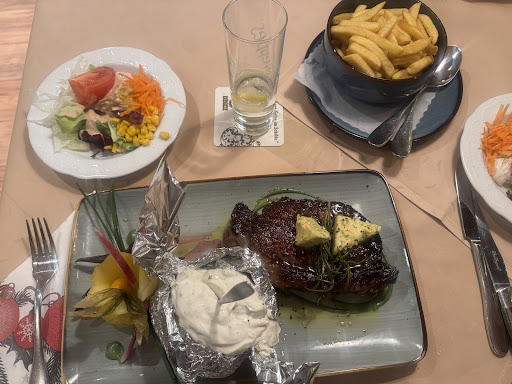 Read moreDas Essen ist immer frisch und heiß worauf ich sehr achte und bis jetzt bin ich nie enttäuscht worden. Das Fleisch ist immer gut durch und zart je nach dem was man bestellt, Steaks zum Beispiel. Die Portionen sind reichlich man wird definitiv immer satt auch die Preise sind angemessen. Die Getränke Karte bietet auch eine gute Auswahl, vor allem der Rotwein ist sehr gut vom Geschmack. Der Service ist hervorragend das komplette Personal ist freundlich und achtet darauf das alles in Ordnung ist. Der Kellner ist immer aufmerksam und freundlich, er gibt auch gute Empfehlungen was man speisen könnte Das Ambiente ist hervorragend Design man fühlt sich sofort wie Zuhause. Schöne Bilder und kleine Skulpturen schmücken das Restaurant, es ist sehr sauber dort. Auch die Sanitären Anlagen sind in einen sauberen und top Zustand. Einen Blick in die Küche konnte ich nicht komplett erlangen aber wenn man durchs Küchenfenster schaut sieht man schon das die Küche groß und in einen guten Zustand ist. In allem kann ich einem Besuch zur goldenen Gans sehr empfehlen man wird...