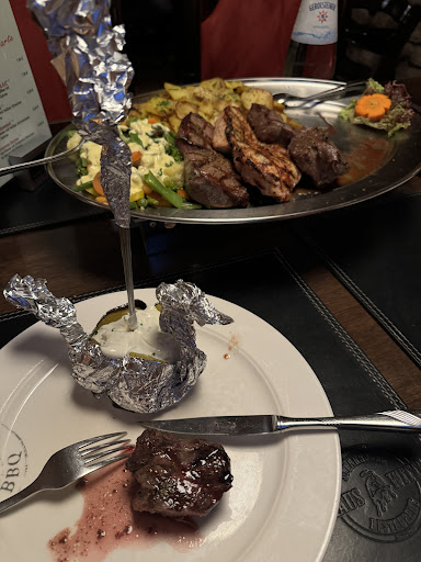 Odwiedziliśmy restaurację po rekomendacji. Miejsce eleganckie, a obsługa bardzo przyjemna (w szczególności kelner pochodzenia chorwackiego). Zamówiliśmy posiłek, zestaw dla dwojga oraz wino. Steki, indyk, warzywa i ziemniaki. Zestaw bardzo duży którego nie daliśmy rady zjeść podczas kolacji. Dodatkowo bar sałatkowy w cenie. Jedzenie drogie, ale bardzo dobre. Steki świetnie wysmażone i smaczne, smażone ziemniaki oraz warzywa na poziomie. Uwaga dla turystów i obcokrajowców: Na zakończenie wyśmienitej kolacji bardzo niemiła niespodzianka - płatność wyłącznie gotówką lub niemieckimi kartami bankowymi EC. Czar prysł.. Turyści i goście zagraniczni nie zapłacą Visa lub MasterCard! Musiałem udać się do bankomatu który jest oddalony 10min drogi w jedną stronę, w bardzo nieciekawej dzielnicy po zmroku. Nie polecam. Pomimo tej niedogodności, wydaje mi się, że jeszcze tam wrócimy (z gotówką w portfelu 😉) Podsumowując: (+) jedzenie bardzo dobre (+) obsługa bardzo miła (+/-) klimat, niby przytulnie, ale czegoś brakuje (+) toalety (-) lokalizacja (-) płatność wyłącznie karta EC (Niemieckie baki lub gotówka).
