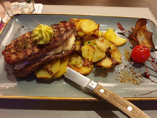 Read moreAn sich ein sehr schönes Restaurant, sehr schick und gemütlich eingerichtet. Die Bedienung könnte etwas besser sein, wir mussten am Anfang schon bestimmt 10 Minuten auf die Speisekarte warten, obwohl ein Kellner die ganze Zeit am Tressen stand und Zeit gehabt hätte. Zum Essen, das essen war sehr gut. Als erstes hatten wir Brot aufs Haus mit drei unterschiedlichen Dips die wirklich alle drei super geschmeckt haben, das Brot auch fluffig und nicht zu hart. Als Vorspeise hatten wir eine Zwiebelsuppe die nicht zu stark nach zwiebeln schmeckte und auch nicht zu wenig, genau richtig. Der Käse war ebenfalls Weltklasse. Als Hauptspeise hatten wir ein Champignon Schnitzel mit Bratkartoffeln und Salat, und ein Cordon Bleu mit Pommes und Gemüse. Das Schnitzel und Cordon bleu war wirklich super, eine sehr gute Qualität vom Fleisch und ein super Geschmack, der Schinken und Käse im Cordon bleu auch wirklich sehr gut. Die Pommes auch super nicht matschig oder kalt, sondern warm und bissfest. Das Gemüse dazu hat frisch geschmeckt. Die Bratkartoffeln waren perfekt gebraten und gut gewürzt, der Salat war frisch. Vom Essen her sehr gut. Leider mussten wir am Ende ca. 20 Minuten auf unsere...