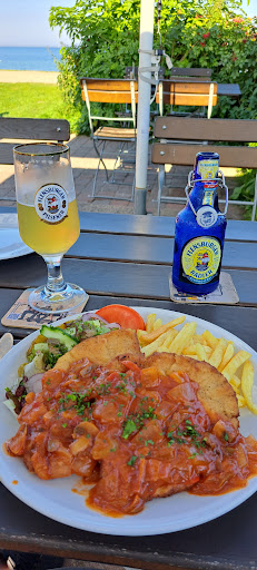 Read moreKleines Campingplatz Restaurant mit schönen Sitzmöglichkeiten (auch Strandkörbe) mit Blick aufs Meer vorm Haus und einem kleinen aber feinen Spielplatz und selbstgebauten Sitzmöglichkeiten aus Europaletten hinterm Haus. Da wir mit zwei Kids da waren, haben wir dankend hinterm Haus Platz genommen. Bestellungen werden von sehr freundlichem Personal direkt am Tresen entgegen genommen aber nach kurzer Wartezeit direkt an den Tisch gebracht. Essen war für einen Campingplatz Restaurant erstaunlich lecker und schön angerichtet und Preislich noch ok. Ich hatte ein Champion Schnitzel mit Pommes und Salat was ich auch als Jägerschnitzel erwartet hatte und dies somit nicht wie ein Vorredner schlecht bewerten werde weil es einfach Sau lecker war. Ich kann diese Lokalität nur empfehlen und falls wir mal wieder dort sein werden, werden wir ganz sicher...