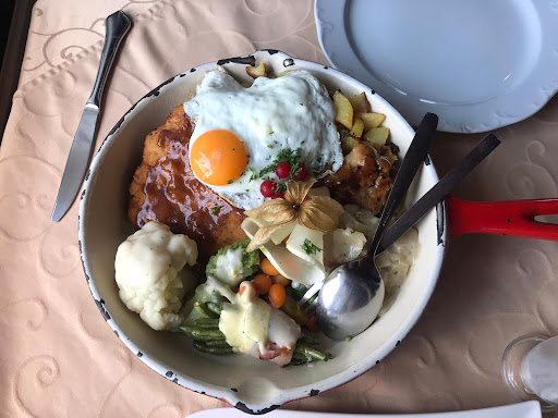Die Toiletten (Herren) gehen gar nicht! Die wurden gefühlt seit Wochen nicht gereinigt! Das ist gar nicht schön. Servicekräfte sehr bemüht und freundlich, aber unterbesetzt. Die leeren Teller standen 45 Minuten vor uns. Die Arbeitsbedingungen scheinen nicht sehr gut zu sein. Der Preis für die Gerichte hat sich in etwa 12 Monaten verdoppelt. Wir haben keine 100% Inflation... Man findet im Internet die alten Karten. Ich verstehe das nicht. Das ist auch einfach nicht gerechtfertigt für die Qualität der Speisen. Das Essen ist sehr fettig. Hier bekommt man eher Gerichte, wie sie Oma und Opa früher aßen. Ist auch vollkommen okay, aber modern ist das nicht und auch nicht auswählbar. Wo ich schon bei modern bin. Die ganze Location ist sehr eng, alt und fällt bald auseinander. Da denke ich gerade wieder an die Toiletten, wo der Mülleimer rostet und der Boden wahrscheinlich das letzte Mal vor 60 jahren beim Einbau gereinigt wurde. Es gibt mehr Plätze, als hineinpassen. Man hört alles, was der Nachbartisch sagt und sitzt eigentlich schon bei denen auf dem Schoß. So kann man zwar nette Leute kennenlernen, aber nicht in Ruhe essen.