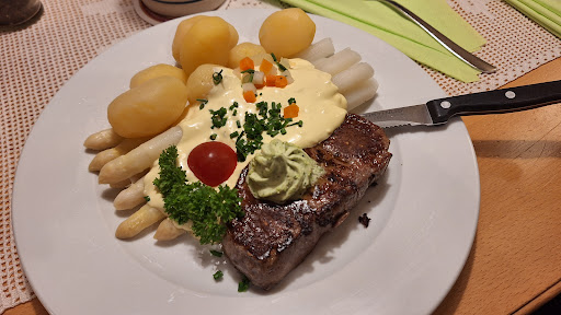 Super nett, besonders das Personal. Das Essen ist sehr lecker und bestens vorbereitet. Je nachdem was man essen will, z.B. Haxe, muss man wegen der Vorbereitungszeit vorbestellen, was sich aber lohnt. An Aktionstagen kann es voll werden. Steak und Schnitzel sind super angerichtet. Dieses Restaurant ist eine Mischung aus hiesiger Traditionsküche und Thaiküche die sehr gut gelungen ist. Auch bei einer größeren Gruppe steht das Essen fast zeitgleich auf dem Tisch. Uns hat es allen sehr gefallen und es lohnt sich dort einzukehren. Die Chefin ist sehr nett, freundlich und immer für einen Spaß zu haben. Es hat uns im kleinen Kreis so gut gefallen, dass wir ein paar Tage später mit einer größeren Gruppe wieder gekommen sind. Enttäuscht wurde niemand. Auch wenn es aus Lager Hammelburg ein Stück zu fahren ist, hat es sich gelohnt....