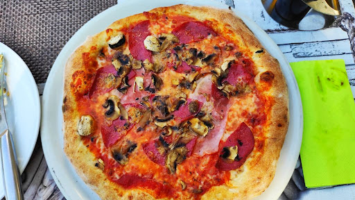 Es ist hier wirklich schön und lauschig und man kann nett draußen sitzen und hat eine gute Aussicht.Der Innenraum ist für ein Vereinsheim sehr schön eingerichtet und gefiel uns ebenfalls. Wir wurden ausgesprochen freundlich von einem netten und sympathischen Kellner begrüßt. Die Karten kamen zeitnah aber schon auf die Getränke mussten wir eine Spur lange warten. Dabei war fast nichts los. Aber die Sonderwünsche (Eis in den Gläsern) wurden problemlos erfüllt. Es war Eis aus einer Eismaschine. Vielleicht dauerte es darum etwas länger. Der Insalata Tonno, den wir gemeinsam als Vorspeise wählten, war ausgezeichnet und auch durchgehend angemacht. Das gefiel uns sehr. Aber, dass die Pizzen schon kamen als wir noch beim Salat waren, war nicht ganz so prickelnd. Gut sahen sie aus, die Pizzen, aber ich erbat für meine Pizza eine etwas längere Verweildauer im Ofen und es kam genau umgekehrt. Meiner Frau Pizza sah besser aus und meine nur recht bleich. Geschmacklich waren sie irgendwie nicht vorhanden. Der Teig war kaum gewürzt und der Rand eher schwer als luftig. Der Belag war zwar reichlich aber ebenso sehr zurückhaltend. Wir erbaten bei Lieferung der Pizzen auch Chili- und Knoblauchöl. Nur es dauerte und dauerte. Als ich mich dann selbst auf den Weg machte um nachzufragen. Mit einem „kommt gleich“ wurde ich dann versucht zufrieden zu stellen. Was „gleich“ im Il Gargano heißt durften wir dann erfahren. Die halben Pizzen waren schon gegessen als das Öl dann „gleich“ kam. Das Chiliöl wurde mit Chiliflocken angemacht und hatte eine ehr brutale Schärfe. Dafür schien das Knoblauchöl gar nichts zu können und schien mithilfe von Knoblauchgranulat angerührt worden zu sein. Zudem sah es noch deutlich oxidiert aus...