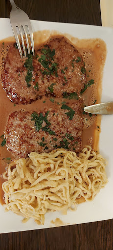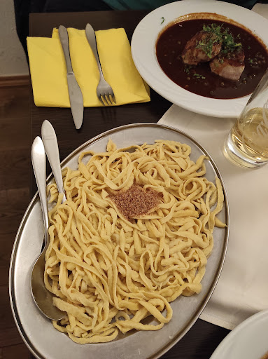 Read moreIch kann leider den guten Bewertungen nicht zustimmen. Wir hatten einen Tisch zum Mittagessen reserviert, auf dem Tischkärtchen war erstmal unser Name falsch geschrieben, kann passieren. Es war laut in der Gaststube, die Kaffeemaschine macht richtig Lärm und läuft ständig, aus der Küche kommt das frisch gereinigte Besteck und wird in eine Schublade gekippt. Zum Essen, nun, ich hatte einen Zwiebelrostbraten, bzw. sollte es einen darstellen. Als ich ihn bekam, sagte die "nette Bedienung", die Mutter der Chefin, das ist ja ein großer Lappen! Dass am Fleisch ein Fettrand ist, lass ich mir ja gefallen, aber wenn auf der kompletten Länge eine Sehne dran ist und die Bedienung mich anmacht, das muss so sein, das dient zur Geschmacksverstärkung, also bitte! Das Fleisch schwimmte in der Soße, die Zwiebeln sind lieblos verkocht. Als Pluspunkt, was man selten bekommt, das Essen kam heiß und dampfend auf dem Tisch. Meine Frau hatte das Lendchen, leider innen noch komplett roh, nach dem wir das reklamiert hatten, die Bedienung: "das hab ich mir schon gedacht, dass es noch nicht durch ist". Wir waren mit unserem Essen fertig, da kam dann das richtig gebratene Lendchen für meine Frau, geschmacklich perfekt. Auch die Schlutzkrapfen waren prima. Wenn eine Bedienung schon zu Anfang sagt, wir haben für Ostern eine kleinere Karte, weil sonst die Küche überfordert ist, frage ich mich, ob ich das als Gast wissen sollte. Habe bisher noch keine so unfreundliche und vorlaute Bedienung erlebt. Schade, ich hatte mich auf den...