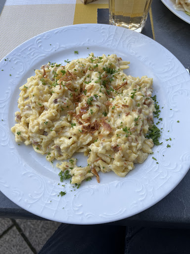 Read moreMeine Frau und ich kehrten hier Dienstags gegen 19:30 Uhr ein. Das Haus war ca. zu 2/3 gefüllt. Wir haben innen Platz genommen und mussten auch nicht lange auf die Bedienung warten. Diese war freundlich und hat unsere Bestellung aufgenommen. Auf die Getränke mussten wir kaum warten und auf das Essen ca. 20 Min., was vollkommen i.O. ist. Hierfür gibt es dann auch den einen Stern. Bestellt waren ein Putenschnitzel mit Spätzle und Leberkäse mit Spiegelei und Pommes. Das war allesamt Essen von handgeschriebenen Tafeln über der Theke. Die Spätzle waren kalt. Die Soße zum Putenschnitzel war eine Eimersoße. Das Schnitzel selbst war ok. Der Leberkäse mit Ei wurde statt mit Pommes mit Kartoffelsalat geliefert (so stand dieses Gericht in der Speisekarte für 10,30 € - ich habe aber das Gericht mit Pommes von der Tafel für 8,50 € bestellt). Dies habe ich sofort reklamiert und die Pommes wurde nachgeliefert. Bei dem Leberkäse war auch eine Soße, die genau so zu den Fertigprodukten gehörte. Leider stimmte am Ende auch die Rechnung nicht. Diese wurde zwar korrigiert, aber das leider auch noch falsch. Leider habe ich die korrigierte falsche Rechnung erst später, längst nach dem Verlassen des Restaurantes, bemerkt. Die Gesamtrechnung von 27,60 € ist auf 26,10 € korrigiert worden. Also 1,50 € weniger. Der Leberkäse aus der Speisekarte kostete 10,30 € und von der Tafel 8,50 €, also einen Unterschied von 1,80 €. D.h. ich wurde hier immer noch um 30 ct behuppst. Als Entschädigung bekamen wir zwei Cappuccini. Leider war in diesen nur ein Hauch von Kaffee. Leicht braune, aromatisierte Milch hätte es besser getroffen. Also, diese Lokalität werden wir in diesem Leben nicht...