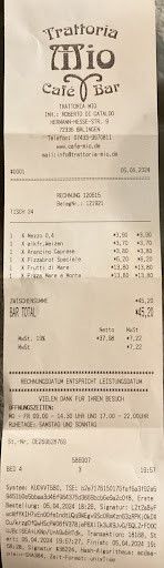 Unsere Heutige Erfahrung im Mio was das Essen betriff wie immer sehr gut dafür 5+⭐️⭐️⭐️⭐️⭐️, ich gehe mittlerweile seit 16 Jahren ins Mio Balingen (Roberto 👍) und das Essen Immer Top 👍