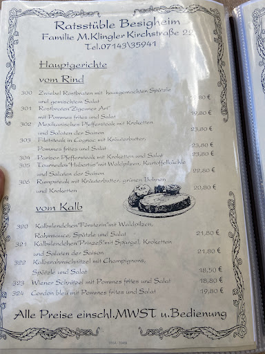 Read moreMeine Lebensgefährtin und ich waren gestern Abend das erste Mal im Ratsstüble zum Abendessen. Bestellt haben wir Rumpsteak mit Kräuterbutter sowie ein Wiener Schnitzel vom Kalb mit Gemüse und Sauce Hollandaise. Die Fleischqualität des Rumpsteaks war durchaus solide wenngleich ich auch schon deutlich zarteres Fleisch gegessen habe, ich vermute daher es kam aus regionaler Quelle und daher kaum gereift. Die grünen Bohnen sehr zart, für meinen Geschmack aber hätte man deutlich weniger Öl / Fett nehmen können. Kalbsschnitzel : auch hier wieder eine ordentliche Qualität der Rohware, allerdings wurde das Schnitzel -definitiv nicht - wie erhofft anständig in Butter souffliert sodas die Panade Blasen wirft und außen schön knusprig wird, stattdessen nahm das Schnitzel ein heißes Bad in der Friteuse. Gemüse definitiv -nicht- frisch sondern TK und auf die Schnelle warmgemacht, sehr schade... Immerhin haben wir uns bewusst für eine gutbürgerliche Küche entschieden und einem recht ordentlichem Preisniveau. Bratensosse geschmacklich leider recht "flach", hätte gerne mehr Substanz haben können. Dessert : haben wir nicht gewählt, es gibt hier eine Auswahl an Eis. Als sehr positiv möchten wir den Service anmerken : höflich,...