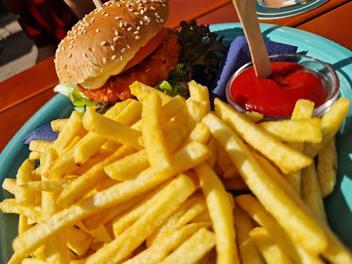 We ordered burger Food was very tasty ,we asked for mitnemmen. Food came fast,But we had more time for our bus so decided to eat half at the Cafe half mitnemmen.. The owner ( men) asked us u ordered for takeaway(mitnemmen) right? We said yes nd he said if u asked for takeaway u should not sit here u should take nd go.