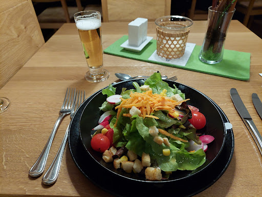 I had the 3-course beer dinner included in the package from the hotel. The staff was very kind to serve me three 0.1 tastes of three different Schwanen beers from the tap to go along with the meal and help me decide. Too bad not all of their beers were available. I chose my own pairings with their Export with the salad, their Dampf (or was it Rauch?) with the steak and their Oak aged with the vanilla ice cream. The meat was nice and juicy, asked for rare and rare it was. The ice cream did definitely have the liquor. I'm giving 4/5 unfortunately because of the unavailability of some of their beers I would have liked better...