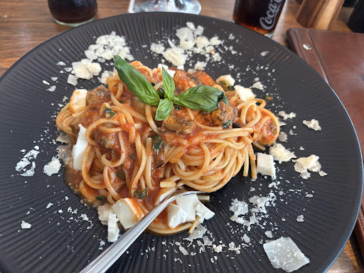 Die Pizza war echt lecker und seitdem ich den zähen Rand gegessen habe, hat sich meine Kiefermuskulatur stark entwickelt. Wer eine schöne Jawline will, ist hier genau richtig. Zahnspangenträgern empfehle ich dieses „Restaurant“ nicht.