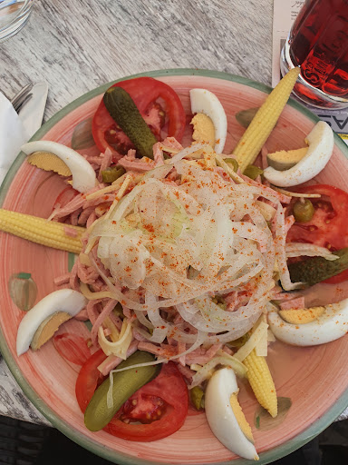 Überzogene Preise für das was geboten wird, 8,90€ für nen gemischten Wurstsalat und dann so wenig auf'm Teller, als ob das ganze nicht genug gewesen wäre war das Dressing einfach wiederlich und hat nur nach Öl und Wasser mit bissle Salz geschmeckt... Wir hatten auf fast allen Tellern bald mehr Garnituren wie Maiskolben, Eier mit zum Teil noch Schale dran und Zwiebeln drauf als überhaupt Wurstsalat. Waren sehr sehr enttäuscht, bei den vorherigen Besitzern war immer alles sehr gut und auch angemessen, aber mit den neuen einfach nur ne Enttäuschung. Es kam nicht mal eine Entschuldigung, dass wir auf unsere Getränke fast 30 min und auf unser Essen sogar fast 1 1/2 Stunden gewartet hatten ...