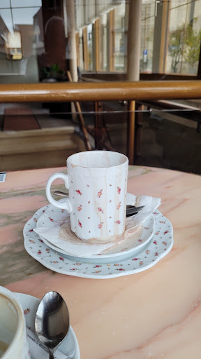 Read moreWar gestern das erste und letzte Mal da. Zuerst standen wir ewig an der Theke im EG. Danach warteten wir im OG ca. 15 Minuten, bis meine Bekannte persönlich zur Bedienung hinging um sie zu an den Tisch zu rufen. Den Tisch hinter uns kassierte sie ab und bei uns nahm sie noch nicht einmal das gebrauchte Geschirr, der vorigen Gäste mit. Später begründete dir Bedienungen dies damit, dass es einen Schichtwechsel gab und sie deswegen dachte es wäre unser Geschirr...aber selbst dann hätte sie es mitnehmen können. Ebenso erwarte ich bei den Preisen, die heutzutage für ein Stück Kuchen aufgerufen werden, dass es nicht nur schmeckt, sondern das es auch optisch gut aussieht. Bei meinem Heidelbeer-Schmandkuchen war der Rand beim Servieren schon angebrochen und die Spitze fehlte. Auch zum nach bestellen und bezahlen mussten wir sehr lange warten, bis die Bedienung wieder in...