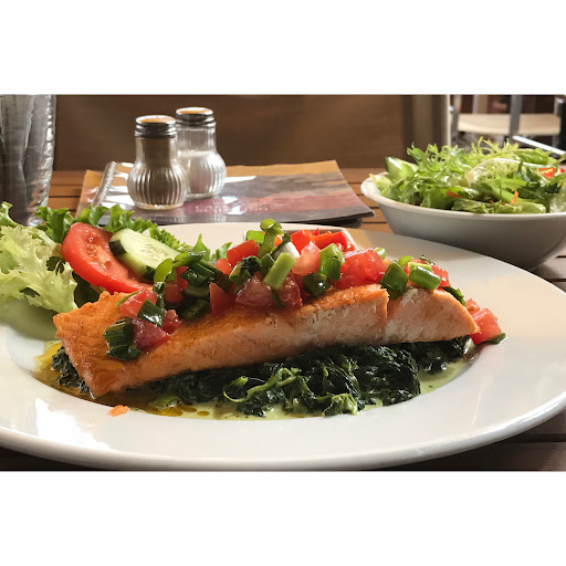 Read moreAfter a long bike ride with my family we did not feel like cooking dinner. We stopped by here on a whim. The menus are German and English. I order the steak and fries. Let me tell you this is the best steak I had in my 4 years in Germany. The skin had that nice crisp and the inside was medium it was perfect. What I would have liked to have instead of the fries was maybe mashed potatoes or parsnip purée with seasonal vegetables. My wife had the Surf and Turf. While the steak again was great the turf consisted of 2 pieces of shrimp and thyme potatoes. The two pieces of shrimp was a disappointment and loads of potatoes was a bit over.