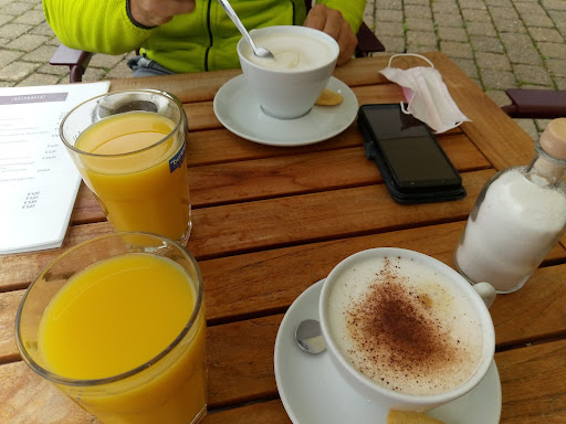 Read moreWir waren schon oft hier zum Kaffee trinken, Mittag essen oder Eis essen. Die Qualität der Speisen war sonst immer sehr gut, bis gut. Auch der Service ließ nie zu wünschen übrig. Heute allerdings war die Dame vom Service schon leicht angesäuert, weil ich mich umgesetzt hatte, da es am vorigen Platz zog wie Hechtsuppe. Als Mann und Kind dann da waren, bestellten wir, es war 16 Uhr und gefühlt die Hälfte der Speisekarte war nicht mehr verfügbar,keine Schnitzel, keine Fleischküchle, kein Salat. Wir bestellten dann Suppe. Die kam dann und das Glas in dem serviert wurde, war glühend heiß, aber die Suppen waren gerade mal lauwarm. Dafür war das dazu serviert Brot wirklich köstlich Die Maultaschen ohne Salat waren auch ok, aber ohne Beilage doch etwas monoton im Abgang. Nächstes Mal essen wir vielleicht doch eher Kuchen, der sah äußerst verlockend aus, aber wenn man ordentlich Hunger hat, will man doch eher was herzhaftes. Ach ja, die heiße Schokolade war die Beste, die ich je...