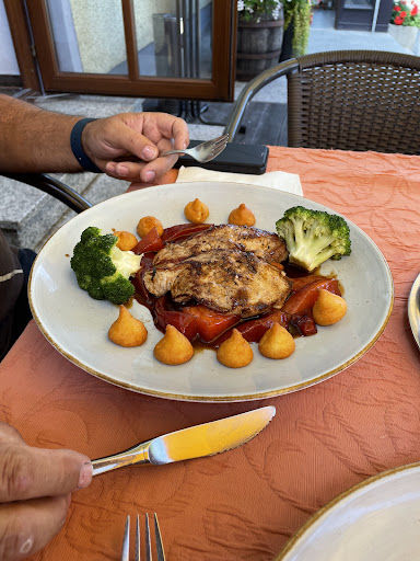 Read moreHatte Hähnchenbrust mit mediterranem Gemüse mit Pasta Pesto und Salat bestellt. Dachte es kommt ein Teller mit Nudeln und Hähnchen mit Gemüse. Den Salat musste ich anfordern. Die Wirtin sagte dann noch , steht da Salat auf der Karte? Unglaublich . Mein Teller kam in Form eines Suppentellers mit etwas Gemüse und Pesto darin . Oben drauf zwei Stückchen Hähnchen angebraten . Die Bedienung fragte mich dann ob ich etwas Brot dazu möchte. Ja klar hatte Hunger. Und das ganze kostete 28.50 Euro . Bin noch nie so auf ein Essen rein gefallen wie hier. Ich darf nicht pasta Pesto auf Karte schreiben wenn ich keine Nudeln bekomme..dann nur Pesto...