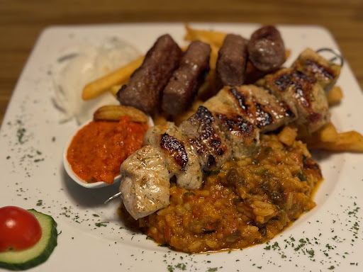 Der cevapcici Teller Das Hackfleisch war zäh und fettig, beim schneiden lief das Fett heraus, geschmacklich 0. es schmeckte ebenfalls nicht selbst gemacht.