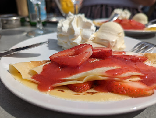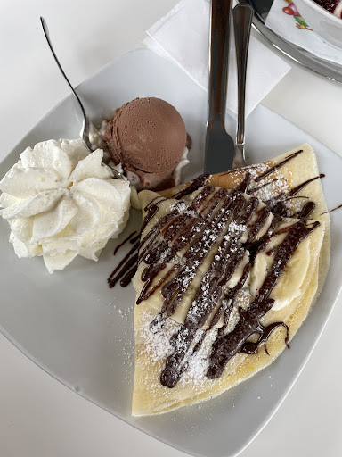 Read moreIch rate ehrlich gesagt von einem Besuch ab. Wir kamen rein, haben uns hingesetzt und keine Sekunde später stand auch schon die Kellnerin bei uns am Tisch. Wir hatten nicht einmal die Möglichkeit in die Karte zu schauen. Bestellt haben wir ein Nutella Crêpe und Spagettieis Waldfrucht. Der Crêpe war leider fertig aus der Packung und wurde nur in der Mikrowelle aufgewärmt. Ich verstehe nicht, warum die Crêpes nicht selber gemacht werden, die stehen zu fünft hinter der Theke und reden. Von Nutella war keine Spur. Es war eine Schokocreme, aber kein Nutella. Das Eis hat nur nach Zucker geschmeckt und nicht nach Vanille oder Schokolade. Bei der Nachfrage, ob wir eine Rechnung bekommen, wurden wir ganz komisch angeschaut und haben nur eine Quittung erhalten, die auf ein Papier geschrieben wurde. Dementsprechend unfreundlich war danach auch das Personal. Wir werden nicht...