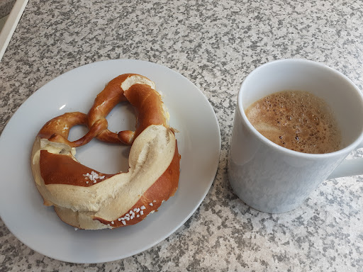Read moreGroße Auswahl an Brot und anderen frischen Backwaren aus eigener Backstube. Zur Mittagszeit gönnte ich mir eine frische 🥨 Brezel, reichlich mit Butter bestrichen. Himmlisch! 😋 Der ☕ Kaffee war sehr gut und stark. 👍 Zum Genießen an Ort und Stelle genügt ein Stehtisch völlig. Sehr freundliches und zuvorkommendes Personal. Modernes, helles Ladenlokal. Sehr...