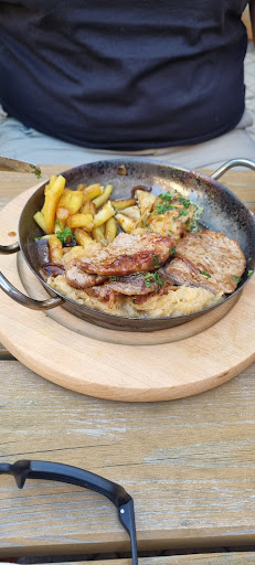 Ich bin mir mit der Bedienung (eventuell ist sie auch die Chefin?) allerdings nicht ganz sicher. Sie war schon freundlich, aber irgendwie hatte ich das Gefühl, dass es aufgesetzt war und auch nur das Nötigste eingesetzt wurde. Ich kann mir nicht helfen, ich hatte die ganze Zeit das Gefühl, auch an anderen Tischen, dass sie sich bemühen musste. Vielleicht auch nur ein schlechter Tag, mag sein ... Getränke waren ok. Ich hatte den Salat vorweg bestellt, als er kam dachte ich schon ... Oha, für 5,60€, ziemlich klein. Und ganz objektiv, waren wir beide der selben Meinung, wenn man bedenkt was man woanders bekommt! Salatsauce ist Geschmackssache, für mich nicht die Beste. Der Kartoffelsalat war hervorragend!!! Allerdings nur 4 Gabeln. Eine Tomatenecke, 2 Scheiben Gurken, ein Haufen sehr harte Karottenscheiben. Rote Beete und Blaukraut war gut. Locker hoch geschichtet ein paar Salatblätter. Ich fand ihn sehr enttäuschend zu diesem Preis. Mein Gericht war dann ... Böhmische Knödel mit Pilzragout ... Auf Nachfrage, hab ich das Angebot angenommen, mit Semmelknödel zu mischen. Es waren dann jeweils 2 Scheiben. Die Semmelknödel waren sehr gut, die "böhmischen" waren seeeehr trocken. Das Pilzragout bestand nur aus Champignons, bei solch einem Gericht, erwartet man aber gemischte Pilze, so kenne ich es bisher auch. Die Sauce war sehr gut, aber so eigentlich schon zu wenig, und wären es nur die trockenen böhmischen Knödel gewesen ... viiiieeel zu wenig. Also für 16€ muß da schon mehr gehen!!! Das andere Gericht war ... Böhmischer Sauerbraten ... Das Fleisch war sehr gut, zerfiel schon beim anschneiden. Sauer von Sauerbraten, war nur angehaucht. Preiselbeeren waren sehr gut und auch die Sauce, aber als Sauerbratensauce würden wir sie nicht durchgehen lassen. Böhmische Knödel dazu, gleiches Problem, wie bei meinem Gericht und auch viel zu wenig Sauce dann. Hier war der Preis angemessen. Geschmacksache halt mit mehr oder weniger sauer, aber heißt halt Sauerbraten ...
