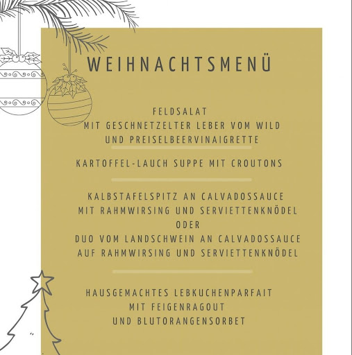 Read moreSehr schön weihnachtlich dekoriert, freundlicher Service. ABER: Mit unserem Essen waren wir leider sehr unzufrieden. Wildragout schmeckte verbrannt und unter der (zugegeben leckeren) Soße war auch zu erkennen, dass dieses eindeutig viel zu stark angebraten wurde. Auch das Wildschwein wurde an unserem Tisch als sehr hart und zäh empfunden. Nach diesbezüglicher Rückmeldung an die Bedienung wäre das für mich noch kein Grund solch eine schlechte Bewertung abzugeben. Nachdem wir dann aber auf der Rechnung gesehen haben, dass eine Portion Pommes mit Pilzrahmsoße aus technischen Gründen als "Käßspätzle" abgerechnet werden müssen und das zu einem Preis von 15,90 € .... da ist uns die Lust Wiederzukommen...