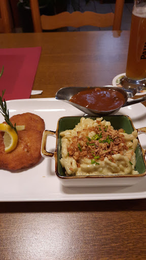 Das Essen ließ leider zu wünschen übrig. Von fertig panierten TK-Schnitzel aus der fritteuse, über lauwarme Spätzle aus der Tüte, die in Brühe gekocht wurden, bis hin zu Fertig-Pulversauce und unangemachtem Beilagensalat der fast nur aus Eisbeergsalat bestand, das gesamte Essen war enttäuschend, wenn ich nur Sachen aus der Tüte und der Tiefkühltruhe bekomme brauch ich auch nicht in ein "Restaurant" gehen. Kalte Teller und schales Bier rundeten das traurige Bild ab.