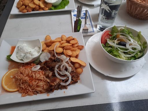Also wir sind hin weil es so gut ausgesehen hat, wurden dann aber nicht gerade freundlich empfangen die Dame die am Eingang saß und am Telefon Reservierungen entgegen nahm verdrehte die Augen als wir kamen, wir fragten für einen Tisch für 2. Sie rief auf griechisch nach jemandem. Dann kam ein Mann der sich dann auch als Kellner entpuppte er wies uns ebenfalls nicht wirklich freudig einen Tisch zu mit einer Hand Bewegung... Wir bestellten, dann sagte er essen erst ab halb 6. Gut es war nur eine halbe Stunde und bis dahin tranken wir was. Das Essen kam,, erstmal das falsche und vorallem die Gäste die nach uns gekommen sind bekamen es vor uns.. Naja nicht so schlimm dachten wir doch als wir es dann hatten mussten wir leider feststellen dass es nicht ganz unseren Geschmack traf, bis auf den Salat der war wirklich sehr gut. Auch die kleine Überraschung nach dem Essen da erhielten wir noch eine Scheibe mit Zimt brstreut eine...