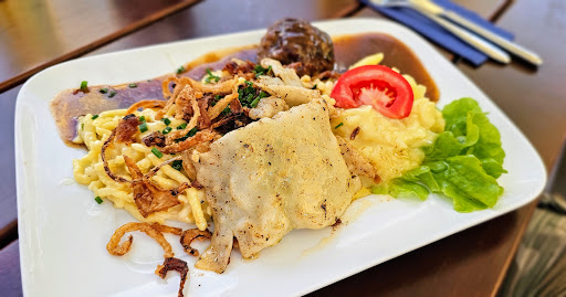 Read moreDas Essen war reichlich jedoch gab es einige Abstriche. Wir hatten für ein Gänseessen reserviert mit genauem Termin. Das Essen wurde zum angemeldeten Zeitpunkt serviert. Geschmacklich war alles sehr gut. Soweit war alles gut. Nun kommt das Aber... Die Gans war trocken, nicht wirklich warm, Die Haut war eher weich. Die Messer waren nicht für dieses Essen geeignet. (Zu stumpf) Als Nachtisch wollte meine Frau Pflaumen Rösti. Was das genau ist konnte uns die Bedinung nicht sagen. Es kam ein Teller mit hartem, kaltem Pflaumenkompot aus vermutlich unreifen Plaumen mit einer Kugel Vanilleeis, einem Kleks Eierlikör und einer Meringe. Was das mit Rösti zu tuen hat kann ich nicht nachvollziehen. Die Räumlichkeiten sind gut, angenehme Atmosphäre. Die Service Damen waren auch auf zack, Freundlich...
