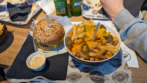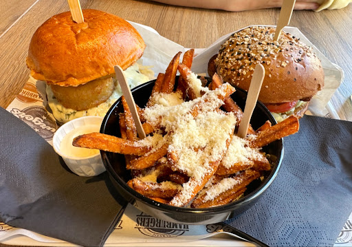 Das Burger Restaurant hinterlässt bei mir gemischte Eindrücke. Der Service war durchschnittlich, wobei auch Selbstbedienung angesagt ist. Die Preise für die Burger sind eher hoch angesetzt, was sich leider nicht ganz in der Qualität widerspiegelt. Der Hamburger war doch recht trocken, was sicherlich dem Saucenmangel geschuldet war. Insgesamt hatte ich den Eindruck, dass eher Convenience-Produkte verwendet werden – angefangen bei den Burger-Saucen über die Buns bis hin zu den Chicken Nuggets und den Aviko Süßkartoffel-Pommes aus der bekannten blauen Tüte.